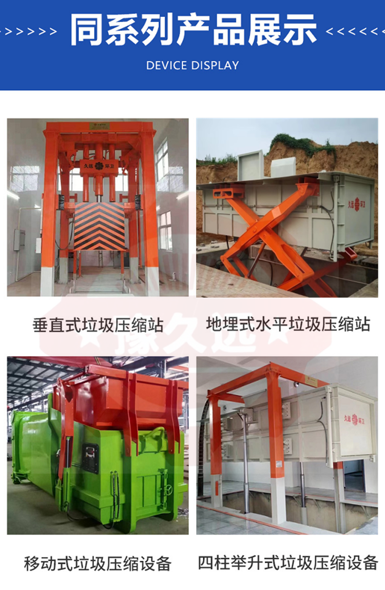 水平式生活垃圾壓縮中轉設備是將垃圾的卸(出)料、壓縮、儲存集合在一起,整體落于地下,利用地下空間將垃圾密閉在箱體內,地面上無垃圾外露現象,壓縮垃圾產生的污水經排污管道直接流入污水井內,然后由污水泵排到城市污水管網,徹底解決了垃圾在收集、儲存、裝運過程中的污染環境、作業效率低等問題。